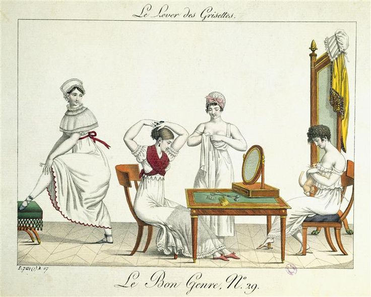 It is my hope that the next time you read (or write) a Regency novel, you will better be able to visualize all the undergarments and how they work together to create the desired Regency clothing silhouette that fine ladies prized.